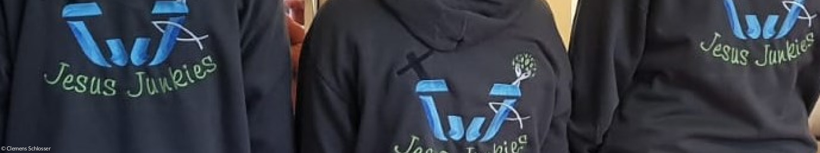 Unser Logo besteht aus mehreren Zeichen: Das Kreuz bedeutet: Jesus ist für uns gestorben; die Hände mit der Weltkugel erinnern uns daran, dass Gott die ganze Welt in seiner Hand hält und damit auch uns. Das Fischsymbol ist das Erkennungszeichen der ersten Christen. Und wir nennen uns Jesus Junkies, denn wir sind süchtig nach Jesus. Wir sind eng vernetzt mit dem CVJM Weiden.
